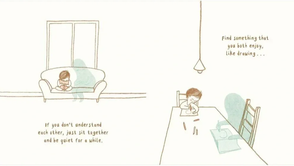 A great visual representation of this comes from the picture book When Sadness is at Your Door by Eva Eland. In it, sadness is drawn as a character that shows up, stays for a while, and then eventually leaves. It’s a reminder that sadness is not who you are, it’s a visitor. It comes and goes. This simple imagery can make it easier to remember that grief is something you can sit beside, not something that has to define you.